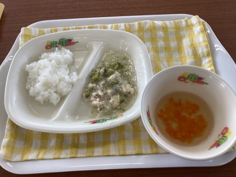 ・ご飯・メヌード(フィリピン)・もやしの中華ソテー・人参スープ