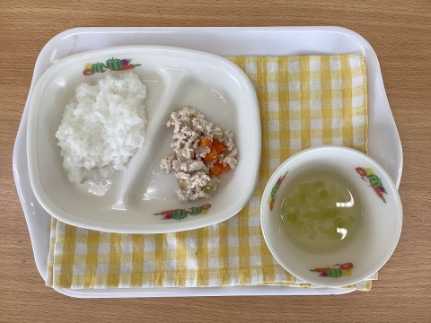 《後期食》・お粥・チキンバーグ・人参のスープ