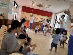 今日は地域の方を対象とした親子イベントを行いました。1歳児ひつじ組のお友達と一緒に朝の活動をしたり、手作りおやつを食べたり、ふれあい遊びをしたりと楽しい時間を過ごしましたよ!