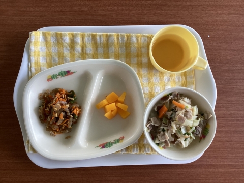 〇味噌豆乳ちゃんぽん〇こんにゃくのきんぴら〇一口フルーツ